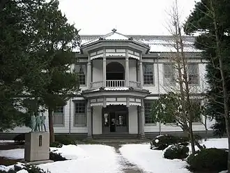 The old building, which had been formerly used as the main building of former Fukushima ordinary junior high school Fukushima-ken Jinjo Chugakko (福島県尋常中学校, Fukushima-ken Jinjō Chūgakkō), is conserved in the front of its site, as the Asaka history museum. It was designated a cultural heritage site in 1977. The museum was deemed unsafe to enter after the 2011 Tōhoku earthquake and tsunami.