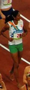 Pramila Gudanda Aiyappa (née Ganapathy) (born 8 March 1977) is a former Indian heptathlete who represented India at the 2000 and 2008 Olympics, finishing 24th and 26th respectively.[1] She won silver at the 2000 Asian Championships and a bronze at the 2010 Asian Games. At the 2010 Commonwealth Games in Delhi, she narrowly missed a medal, finishing fifth.[2] Now retired, Pramila actively coaches young athletes alongside her husband, former national decathlete Sri Aiyappa. Their daughter, Unnathi Aiyappa, is an emerging track talent, showing promise in hurdles and sprints under their guidance.