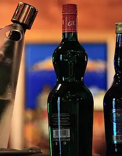 GET 27 (/dʒɛt/) is a liquor with mint used as an apéritif or in cocktails. The company was founded in France by Jean and Pierre Get in 1796. Production was in Revel, in the Lauragais area. Trademarked in 1868 as Pippermint GET, the liqueur used peppermint oil imported from England rather than the locally-grown variety. The original distillery remains in use as the town’s cultural centre, but production moved to Gémenos and then to Beaucaire in 1995. The company is now part of Casanis, owned by Bacardi.[1] While its name refers to its original alcohol percentage, it currently has an alcohol content of 21%. Another product of the brand is the GET 31.[2]