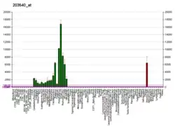 - ^ Bongcam-Rudloff E, Nistér M, Betsholtz C, Wang JL, Stenman G, Huebner K, et al. (March 1991). "Human glial fibrillary acidic protein: complementary DNA cloning, chromosome localization, and messenger RNA expression in human glioma cell lines of various phenotypes". Cancer Research. 51 (5): 1553–1560. PMID 1847665.