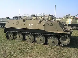 The GT-MU (Russian: ГТ-МУ) is an all-terrain, lightly armored and buoyant tracked vehicle developed in the then Soviet Union. The vehicle was developed in the Gorkovsky Avtomobilny Zavod and is a further development of the GT-SM. The vehicle was primarily used by airborne forces as an armoured personnel carrier and carrier for special vehicles.