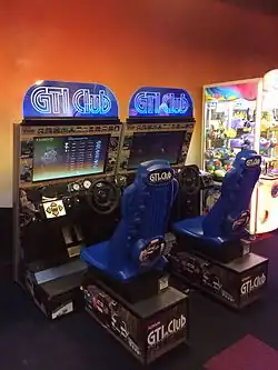 GTI Club is a racing game originally released for the arcades in 1996 by Konami, on their new Cobra arcade board,[1] which uses PowerPC-based hardware. In the original, the player raced around the Côte d'Azur and could choose from 5 rally cars including a Mini Cooper and Renault 5 Alpine Turbo. The game allowed free-roaming of the environment, which was revolutionary for the time, and contained several semi-hidden shortcuts that could be used to reduce lap times. A handbrake is provided which the player is encouraged to use to perform handbrake turns round sharp corners.
