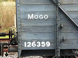 Note: many of these codes could have an extra letter to identify variations, such as Mink A (a 16 ft (4.9 m) ventilated van), or Mink G (a 21 ft (6.4 m) ordinary van). Most of these codes were painted onto the wagons for easy identification.