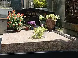 Upon her death, on 3 August 1954, she was refused a religious funeral by the Catholic Church on account of her divorces, but given a state funeral, the first French woman of letters to be granted the honour, and interred in Père-Lachaise cemetery.[25][26][11][41]