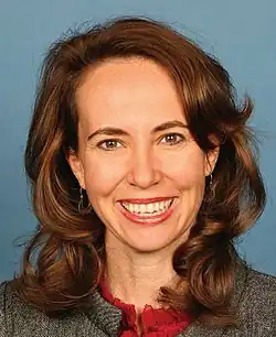 Giffords was a member of the Blue Dog Coalition and the New Democrat Coalition. She was a co-founder of the Congressional Motorcycle Safety Caucus. Until her husband's retirement, she was the only member of the U.S. Congress whose spouse was an active duty member of the U.S. military. She is also known as a strong proponent of solar energy as well as for her work to secure the Mexico–United States border.[34][35]