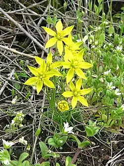 Gagea bulbifera is a Eurasian species of plants in the lily family, widespread from Romania to Xinjiang.[1] It is native to Romania, Russia (North Caucasus, West Siberia Krai, Altay Krai), South Caucasus, Kazakhstan, Kyrgyzstan, Iran, Turkey, Xinjiang, Western Himalayas.[2][3][4][5][6][7][8][9][10]