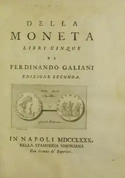 - ^ Galiani, Ferdinando (1780). Della Moneta (2 ed.). Napoli: Stamperia Simoniana – via Google Books.