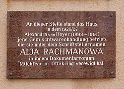 - ^ Heinrich Riggenbach (2010). "Der Nachlass von Alja Rachmanowa (Galina von Hoyer) in der Kantonsbibliothek Thurgau" (PDF). Kantonsbibliothek Thurgau. p. 5. Retrieved 2022-09-13.