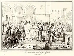 ![]() Fanciful 19th-century depiction of Galla's deposition, by Giuseppe Lorenzo Gatteri | |