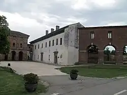 The galleria or gallery was once a corridor, aligned south to north, linked to the large Sabbioneta Castle that stood inside the walled town. Described as a "grand corridor" of the castle, it was built with stone and brick in 1584–1586. It connects to the externally drab Palazzo Giardino, which through a second portico (corridor piccolo), once connected to the castle. The statuary collection was acquired in the 16th century by Vespasiano Gonzaga[1] from antique dealers and collectors of northern Italy, as well as much of it carried away as booty by his father after the imperial Sack of Rome in 1527.[2] The hunting trophies originated from imperial collections in Prague. Much of this collection remained in the palace until 1773, when the Austrian authorities transferred them to the Palace of the Accademia di Mantova, leaving the gallery an elegant but vacant shell of its former state. In 1915 the renamed Accademia Nazionale Virgiliana ceded the collection to the comune, which has since moved it to the Palazzo Ducale of Mantua. Many pieces however, were either sold or looted in the imperial Sack of Mantua (1630) during the War of the Mantuan Succession.[3]