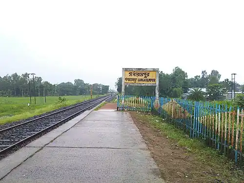 Gangarampur Railway Station was built earlier in 2004 and the first train ran on 30 December 2004. The station is located at the south side of the city near Gangarampur College. Few express trains like Howrah–Balurghat Express, Tebhaga Express(Balurghat-Kolkata), Gour Express(Balurghat-Sealdah), Balurghat-Siliguri Intercity Express stops at Gangarampur Railway Station.