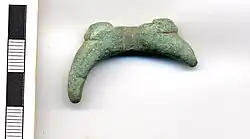 809 copper-based artifacts have been found, with almost half of them shaped as copper crescents. Given their consistent shape, it has been hypothesized that the copper crescents were used as currency, however, most of the copper artifacts found have been fragments, making it difficult to test this hypothesis.[1]