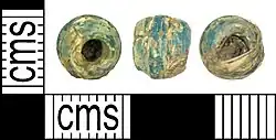 Glass processing was among the earliest activities that took place. Thousands of glass beads have been found in and around Gao, dating from the eighth to the fourteenth century CE.[8] Their shapes include cylinder, oblate, sphere, tube, ellipsoid, bicone, and disc, and colors range from red to blue to yellow. Analyzing the composition of the beads can indicate their origins; several compositional groupings have been recognized, included plant-ash soda-lime-silica glass, mineral soda-lime-silica glass, high-lime high-alumina glass, mineral soda-high alumina glass, plant ash soda-high alumina glass and a high lead composition glass. The dating of these different composites indicates that the source of the glass used to make the beads changed sometime during the end of the tenth century. Earlier glasses were probably produced in Iraq and Baghdad, and later glasses were produced in Egypt.[8]