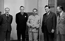 In the fall of 1942 Cowles and Barnes accompanied Willkie, who was serving as special representative of President Roosevelt, in his international tour (North Africa - Beirut - Jerusalem - Soviet Union - Siberia - China). They visited Stalin in Moscow on September 23, 1942[6] Returned to USA Cowles had 2-hours press conference in November 1942 and told how Stalin allegedly expressed anti-British sentiment.[7] Stalin denied the accusation.[8]