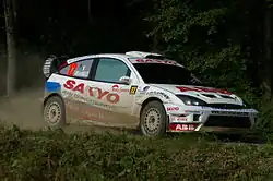 MacHale in his Ford Focus RS WRC 04 on the 2006 Rally Japan. | |