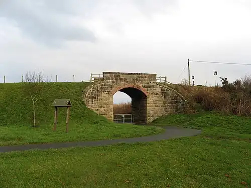 The GNoSR station opened as Garmouth on 12 August 1884[3] and to goods on 5 May 1886[6] with the central section of the coast line, served by through Aberdeen to Elgin trains.[7] In 1923 the Great North of Scotland Railway was absorbed by the London and North Eastern Railway. This company was nationalised in 1948, and services were then provided by British Railways. The station and line was recommended for closure by Dr Beeching in his report "The Reshaping of British Railways"[8] and closed on 6 May 1968.[3][9]