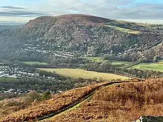Garth Hill (usually called The Garth, or Garth Mountain; Welsh: Mynydd y Garth) is a hill located in between the communities of Llantwit Fardre and Pentyrch in Wales. The Garth can be seen from nearly the whole of the city of Cardiff and the Taff Valley, and on a sunny, clear day as far as Weston-super-Mare across the Bristol Channel in southwest England. It lies adjacent to the Taff Vale with the village of Pentyrch on one side and looks down onto the small villages of Gwaelod-y-Garth and Taff's Well. The Garth has a number of tumuli on its top.[1] These are burial sites dating from the early to middle Bronze Age.[2]