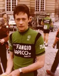He raced on the Continent for nine years; during this period he partied hard and had a reputation as a supplier of amphetamines to other riders.[13] With Tony Doyle, he rode the Six Day circuit in Europe, in 1985 winning the Bremen Six Day. The same year he won the European Madison championship also with Doyle. He was also successful on the European Kermesse circuit including in 1981 beating Lucien Van Impe at Eeklo in Belgium.[9][11] In Australia in 1985, Wiggins won the Melbourne Cup on Wheels and a 1000-kilometre road race in Western Australia.[9]