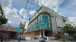 Gateway Mall 2 is a part of the Araneta Center Redevelopment Plan.[18][26][17][27] The mall's construction began in the second quarter of 2017, where the foundations linking to the Farmers Plaza was constructed, and in August 2017, the former Gateway Food Park, as well as the former parking space located on the Coliseum's western Red Gate facade, were excavated to give way for the construction of the main building of the mall, while the official groundbreaking ceremony followed in July 31, 2018.[28] Megawide Construction Corporation served as the general contractor of the project, while the Araneta Group tapped Aidea as the main architectural firm. The Araneta Group also hired Stages, Design and Construction (SDC) for the ending phases of construction and finishing works, J.B Pascual Construction Services for supply and installation works, and AMCOM & Company Inc. as the general consultant of the project.[29] The new mall will comply with basic LEED development standards.[30][31]