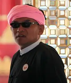 A man wearing a gaung baung in the traditional Shan style.