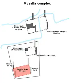 - ^ a b c d e Khairzade, Khair Mohammad; Franke, Ute (2020). "The 'Musalla'-Complex in Herat Revisited: Recent Archaeological Investigations at the Gawhar Shad Madrasa". In Ahrens, Alexander; Rokitta-Krumnow, Dörte; Bloch, Franziska; Bührig, Claudia (eds.). Drawing the Threads Together Studies on Archaeology in Honour of Karin Bartl.