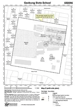 - ^ a b c d e f g h i j k l m n o p q r s t u v w x y z aa ab ac ad ae af ag ah ai aj ak al am an ao ap aq ar as at au av aw ax ay az ba bb "Geebung State School (entry 650096)". Queensland Heritage Register. Queensland Heritage Council. Retrieved 15 October 2021.
