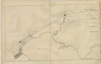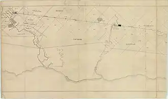 Also in late 1855, four miles of the permanent line from Cowies Creek station to Geelong station was completed and the accommodation at the terminus were almost finished the building process.[24] On the southern side[25] of the line, ten miles of earthwork was completed, which was from Geelong station and Duck Ponds, and ready for trial.[24] In the last quarter of 1856, the railway company operated trial passenger train running between Geelong and Duck Ponds (now Lara) stations.[17][8] Duck Ponds was also the transition station from the Geelong line to Williamstown where the line would continue via the junction.[14][24] Mount Alexander and Murray River Railway Company by that time has been acquired by the colony government and the contractors that were responsible for the Williamstown junction's project was still in the negotiating process due to the labour shortages.[24] Also, the partnered company announced that they would confine their construction to the six miles of the Melbourne and Williamstown portion and approximately 70 miles from Melbourne to Alexander which remained untouched.[24]