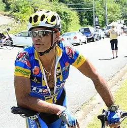 Eugene "Gene” Samuel (born October 15, 1960) is a semi-retired track cyclist and road cyclist from Trinidad and Tobago, who represented his native country at four consecutive Summer Olympics, starting in 1984[1] where he placed fourth, missing the bronze medal by 4/100ths of a second. He won a gold, a silver and a bronze medal in the Men's 1,000m Time Trial at three different Pan American Games. Samuel is a well-known bunch race track cyclist for his never-say-die competitive attitude and his warrior spirit, hence his nickname, "Geronimo". He broke the World Professional record in the 1000 metre time-trial in Cali, Colombia, in 1992. He was a World Champion bronze medallist in the 1000 metre time trial in 1991 at the World Championships in Stuttgart, Germany, a few days after winning the gold medal at the Pan American Games and breaking the track record in Havana, Cuba. He won double gold medals at the 1986 CAC Games in Santo Domingo and broke the 1000m track record in the process. He has three times been Sportsman of the Year in Trinidad and Tobago and also was inducted into the Sports Hall of Fame in 2000.