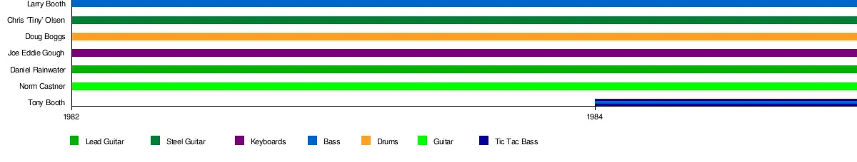 The Farewell Party Band is his long-time backing band. They were named after his 1978 hit single "Farewell Party". Between 1982 and 1984, two studio albums were released credited to Gene Watson and the Farewell Party Band. The band backed Watson on one of his solo albums, and they released one studio album on their own. Several notable musicians were members of the Farewell Party Band, such as Tony Booth. While many other members have played with them since the 1980s, below is a timeline of just the members during their recorded output.
