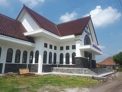 Geneng Station (station code: GG) is a third-class railway station in Tepas, Geneng, Ngawi, Indonesia, operated by Kereta Api Indonesia, located 200 m southwest of Soedono Sugar Refinery Mill.[1] This railway station is at the most southeastern railway station in Ngawi Regency. This station's new building is operated—which has four tracks (two main lines and two passing tracks)—since Babadan–Geneng double track segment activation on 16 October 2019[2] and Geneng–Kedungbanteng on 30 November 2019.[3]