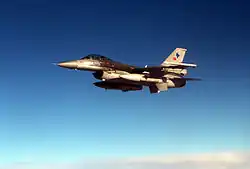 Denmark was the smallest member of the NATO partnership, with the Royal Danish Air Force accepting 58 F-16A/B aircraft under Denmark's initial order on January 28, 1980.[5] A small follow-on order brought a further twelve aircraft to Denmark, and two further attrition replacement orders were later placed, resulting in a total of 62 F-16AM and 16 F-16BM that entered Danish service.[6]