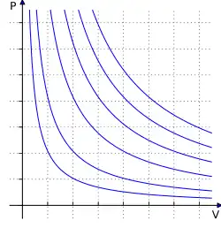 where is the pressure of the gas, is the volume of the gas, is the absolute temperature of the gas, and is a constant. More commonly, when comparing the same substance under two different sets of conditions, the law is written as: