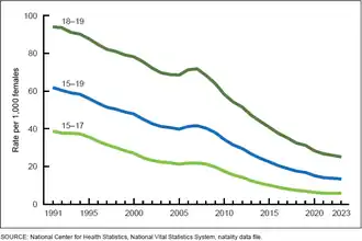 - ^ Kekatos, Mary (June 1, 2023). "Teenage birth rates in the US reached historic lows in 2022, CDC report finds". ABC News. Retrieved December 7, 2023.