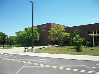 In 1924-1925, a commodious High School building was built at the corner of Milton and Pulteney Streets in the City of Geneva. The school was erected on the grounds formerly occupied by a cemetery; the bodies from which were exhumed and removed to Glenwood Cemetery.[1] The building was used by Finger Lakes Community College for several years starting in 2007, before being demolished in 2014.