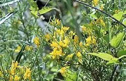 Genista corsica is a plant endemic to Corsica and Sardinia where it is associated with sunny open landscapes and poor stony soil. It is a common constituent of garrigue and maquis communities.