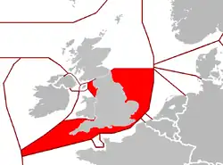 England comprises most of the central and southern two-thirds of the island of Great Britain, in addition to a number of small islands of which the largest is the Isle of Wight. England is bordered to the north by Scotland and to the west by Wales. It is closer to continental Europe than any other part of mainland Britain, divided from France only by a 33 km (21 mi) sea gap, the English Channel.[3] The 50 km (31 mi) Channel Tunnel,[4] near Folkestone, directly links England to mainland Europe. The English/French border is halfway along the tunnel.[5]