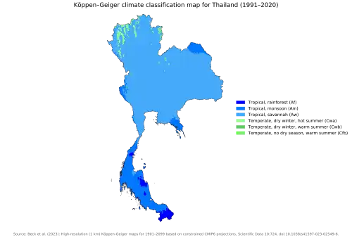 8. ^ a b c d e f g h i j k l m n o p q r s t u v w x "The Climate of Thailand" (PDF). Thai Meteorological Department. Archived from the original (PDF) on 15 October 2022. Retrieved 18 August 2016.