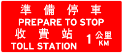 Freeways in Taiwan are not exactly toll roads in the sense that toll gates/stations are not located at the entrance and exits of the freeway. Toll stations with weigh stations are located every thirty to forty kilometres on the No. 1 and No. 3 National Freeways of the Republic of China. There are usually no freeway exits once a toll station notification sign appears, making it necessary for the driver to be familiar with the locations of the toll stations in advance.