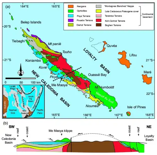 - ^ Cluzel, Dominique; Whitten, Matthew; Sébastien, Meffre; Aitchison, Jonathan C.; Maurizot, Pierre (9 November 2017). "A Reappraisal of the Poya Terrane (New Caledonia): Accreted Late Cretaceous-Paleocene Marginal Basin Upper Crust, Passive Margin Sediments, and Early Eocene E-MORB Sill Complex". Tectonics. 37 (1): 48–70. doi:10.1002/2017TC004579. S2CID 55580161.