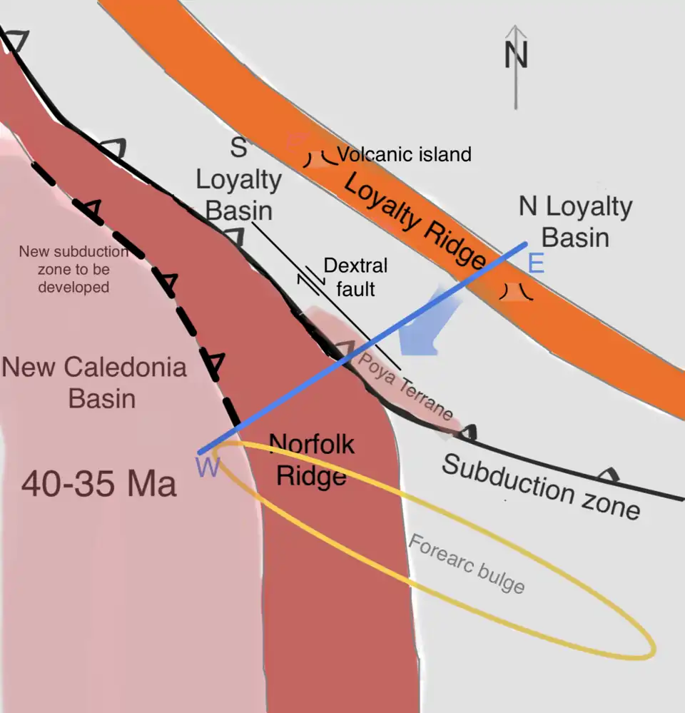 - ^ Cluzel, Dominique; Marion, Iseppi; Chen, Yan (20 July 2021). "Eocene pre- and syn-obduction tectonics in New Caledonia (Southwest Pacific), a case for oblique subduction, transcurrent tectonics and oroclinal bending; structural and paleomagnetic evidence" (PDF). Tectonophysics. 811: 228875. Bibcode:2021Tectp.81128875D. doi:10.1016/j.tecto.2021.228875. ISSN 0040-1951. S2CID 235507976.