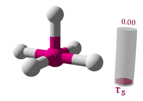 When τ5 is close to 0 the geometry is similar to square pyramidal, while if τ5 is close to 1 the geometry is similar to trigonal bipyramidal: