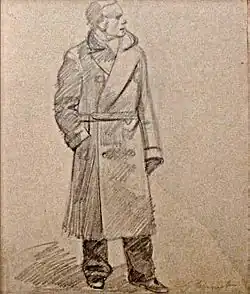 With the outbreak of the First World War, the antimilitaristic Schrimpf "successfully employed every possible trick to avoid military service; in so doing, however, he ruined his health".[2] From 1915–1918 Schrimpf lived in Berlin, where he worked as a freelance artist.[3] In his free time he used every minute for drawing, painting, and wood carving. Mostly self-taught as an artist, he learned by copying the Old Masters.