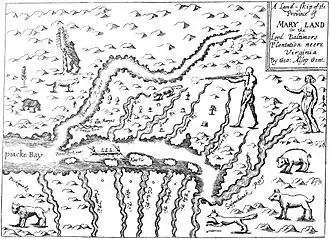 After an obscure two-year apprenticeship he left London in 1658 due to a hatred for its local Puritans, according to his own account. Alsop worked as an indentured servant for two years. His master, Thomas Stockett (1635-1671), was one of four brothers who immigrated from England in 1658 and settled in Baltimore County, Maryland.[2] George Alsop appreciated the new colony, but at the end of his service to Thomas Stockett, he grew ill and returned to England. He then published his book, and may also have written a volume of Sermons, a work presented later by someone of the same name. In the work on Maryland, Alsop asserts that his design is to encourage European and English emigration to America. Alsop's eagerness to praise every aspect of Maryland makes his work a permanent record of the psychology of advertising. It also serves to a lesser extent as a reliable historical source of information for early Baltimore County, Maryland, and the then native Susquehannock.[3]