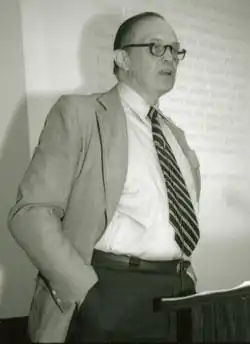 Miller moved back to Harvard as a tenured associate professor in 1955 and became a full professor in 1958, expanding his research into how language affects human cognition.[4] At the university, he met a young Noam Chomsky, another of the founders of cognitive science. They spent a summer together at Stanford, where their two families shared a house. In 1958–59, Miller took leave to join the Center for Advanced Study in the Behavioral Sciences at Palo Alto, California, (now at Stanford University).[8] There he collaborated with Eugene Galanter and Karl Pribram on the book Plans and the Structure of Behavior. In 1960, along with Jerome S. Bruner,[1][4] he co-founded the Center for Cognitive Studies at Harvard.[4] The cognitive term was a break from the then-dominant school of behaviorism, which insisted cognition was not fit for scientific study.[1] The center attracted such notable visitors as Jean Piaget, Alexander Luria and Chomsky.[8] Miller then became the chair of the psychology department.[4] Miller was instrumental at the time for recruiting Timothy Leary to teach at Harvard. Miller knew Leary from the University of Alabama, where Miller was teaching psychology and Leary graduated with an undergraduate degree from the department.