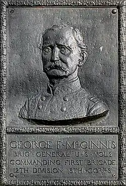 On 4 April 1863, McGinnis was promoted to brigadier general of volunteers, to rank from 29 November 1862.[5] He was in command of a brigade in the District of Eastern Arkansas. After a time of garrison duty, McGinnis was appointed to command the 1st Brigade in Alvin P. Hovey's 12th Division of the XIII Corps, commanded by John A. McClernand. McGinnis's brigade was heavily engaged in the Battle of Champion Hill and fought with distinction. During the siege of Vicksburg, his troops occupied a length of siege lines in the center of the Union army near Fort Garrott. A bronze plaque of McGinnis is located near this spot.