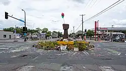 Local unrest in Minneapolis–Saint Paul immediately after Floyd's murder was the second-most destructive to property in U.S. history, after the 1992 Los Angeles riots,[14] but peaceful protest gatherings at the intersection in late May 2020 were free of the property destruction, arson, and looting that characterized other local demonstrations.[15][16] The intersection became a place of pilgrimage for people protesting Floyd's murder and other forms of racial injustice.[17] But in the weeks and months after Floyd's murder, the neighborhood surrounding the square, which had previously had a reputation for gang activity, continued to have elevated levels of violent crime and regular gunfire incidents.[17] By August 14, 2022, seven people had been killed by gun violence at or around the square since Floyd's murder,[18][1][19][20][21][22][23] and one person had died there as the result of a drug overdose.[24]