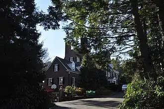 The George R. Minot House is a National Historic Landmark in Brookline, Massachusetts. It is an architecturally undistinguished vernacular Colonial Revival brick house, probably built in the 1920s. The 2+1⁄2-story main block has an attached 1+1⁄2-story ell, and two end chimneys. The hip roof is pierced by gabled dormers, and a pedimented portico shelters the front entry.[2]