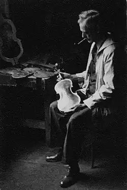![]() Hodges holding a violin he made | |