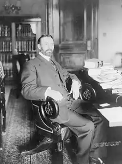Sutherland's tenure in the Senate coincided with the Progressive Era in American politics. He voted for much of Theodore Roosevelt's legislative agenda, including the Pure Food and Drug Act, the Hepburn Act, and the Federal Employers Liability Act. He was also "a longstanding women’s rights advocate. He introduced the Nineteenth Amendment into the Senate... campaigned for the passage of that amendment, helped draft the Equal Rights Amendment, and was a friend and adviser of Alice Paul of the National Woman's Party."[9] However, he generally sided with the "Old Guard" of conservatives who battled with their Progressive counterparts within the party during William Howard Taft's presidency. He was also involved closely with the legal codification of the period and joined Taft in opposing the legislation admitting New Mexico and Arizona into the union because of clauses within their constitutions allowing for the recall of judges.[10]