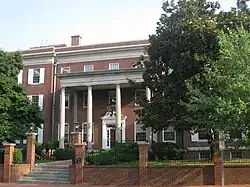In 1821, the Baptist missionary and leading minister Luther Rice secured funds from James Monroe, John Quincy Adams, John C. Calhoun, and other benefactors for a college to educate citizens from throughout the young nation in Washington, D.C.[19] A large building was constructed on College Hill, which is now known as Meridian Hill. On February 9, 1821, President Monroe approved the congressional charter, creating the non-denominational Columbian College.[20] Washingtonians, Congress, and the academic community celebrated this new institution as the fulfillment of Washington's vision.[17] In 1824, the first commencement was considered an important event for the young city. In attendance were President Monroe, John C. Calhoun, Henry Clay, the Marquis de Lafayette, and other dignitaries.[21]